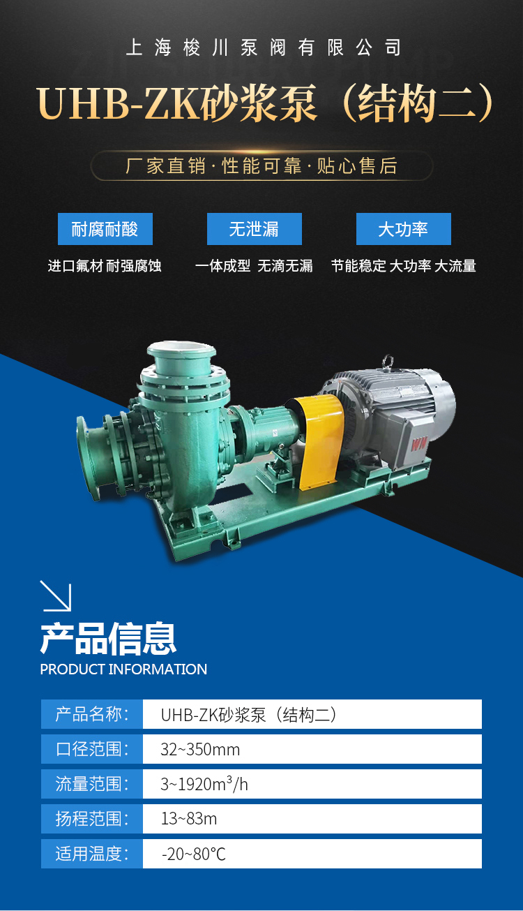 UHB-zK型系列砂漿泵為懸臂式單級、單吸離心泵,其過流部件采用鋼襯超高分子量聚乙烯制造,具有較強的耐腐蝕性、卓越的耐磨性、抗蠕變性(耐環(huán)境應(yīng)力開裂),同時采用金屬基體結(jié)構(gòu),提高了產(chǎn)品的承壓能力。